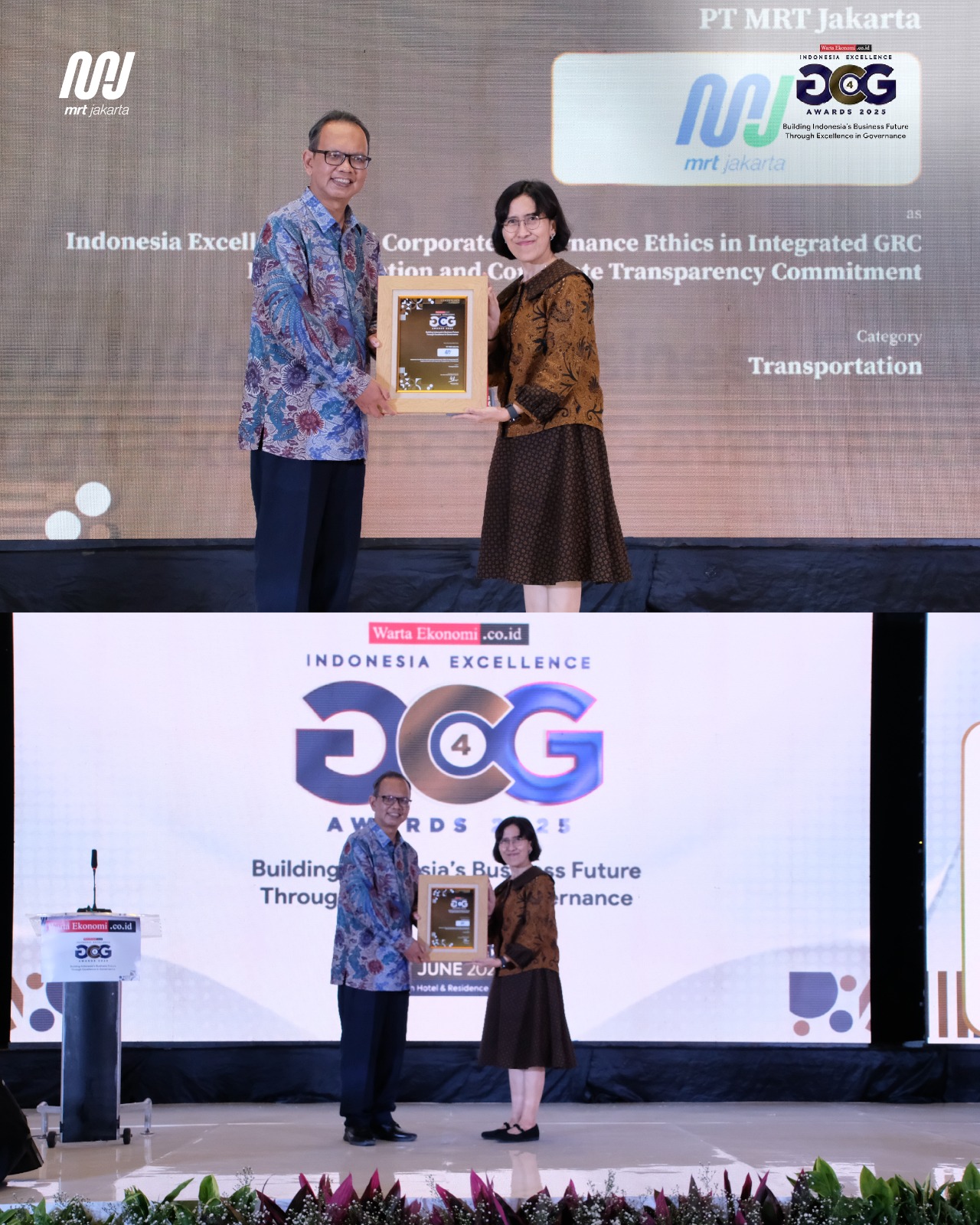 Dorong Tata Kelola Perusahaan yang Berintegritas, MRT Jakarta Raih Penghargaan Indonesia Excellence Good Corporate Governance 2025