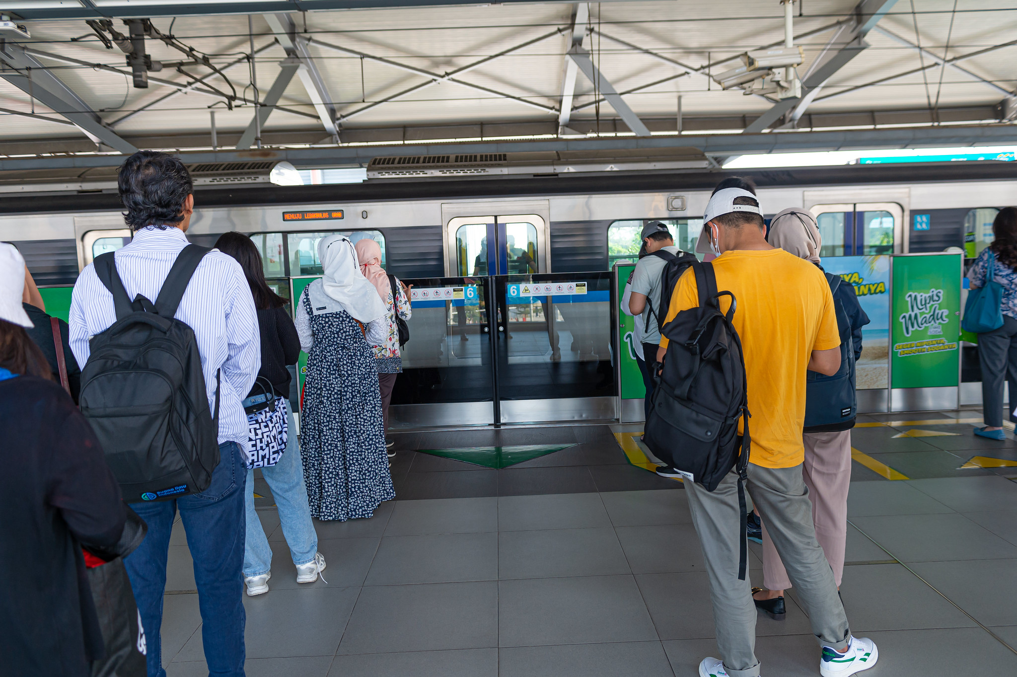 Penumpang memindai kode qr di pintu penumpang. Foto oleh PT MRT Jakarta (Perseroda).