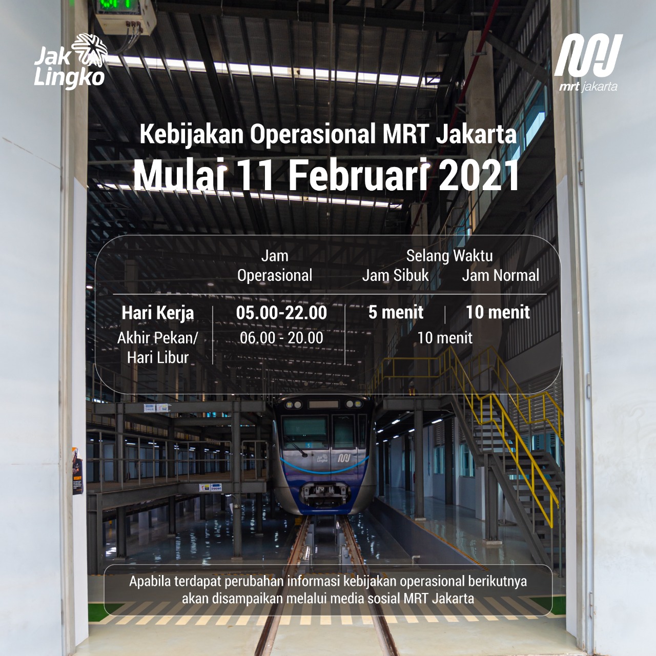 Perubahan Jadwal Operasional MRT Jakarta dalam masa Pemberlakuan Pembatasan Kegiatan Masyarakat (PPKM) Berbasis Mikro