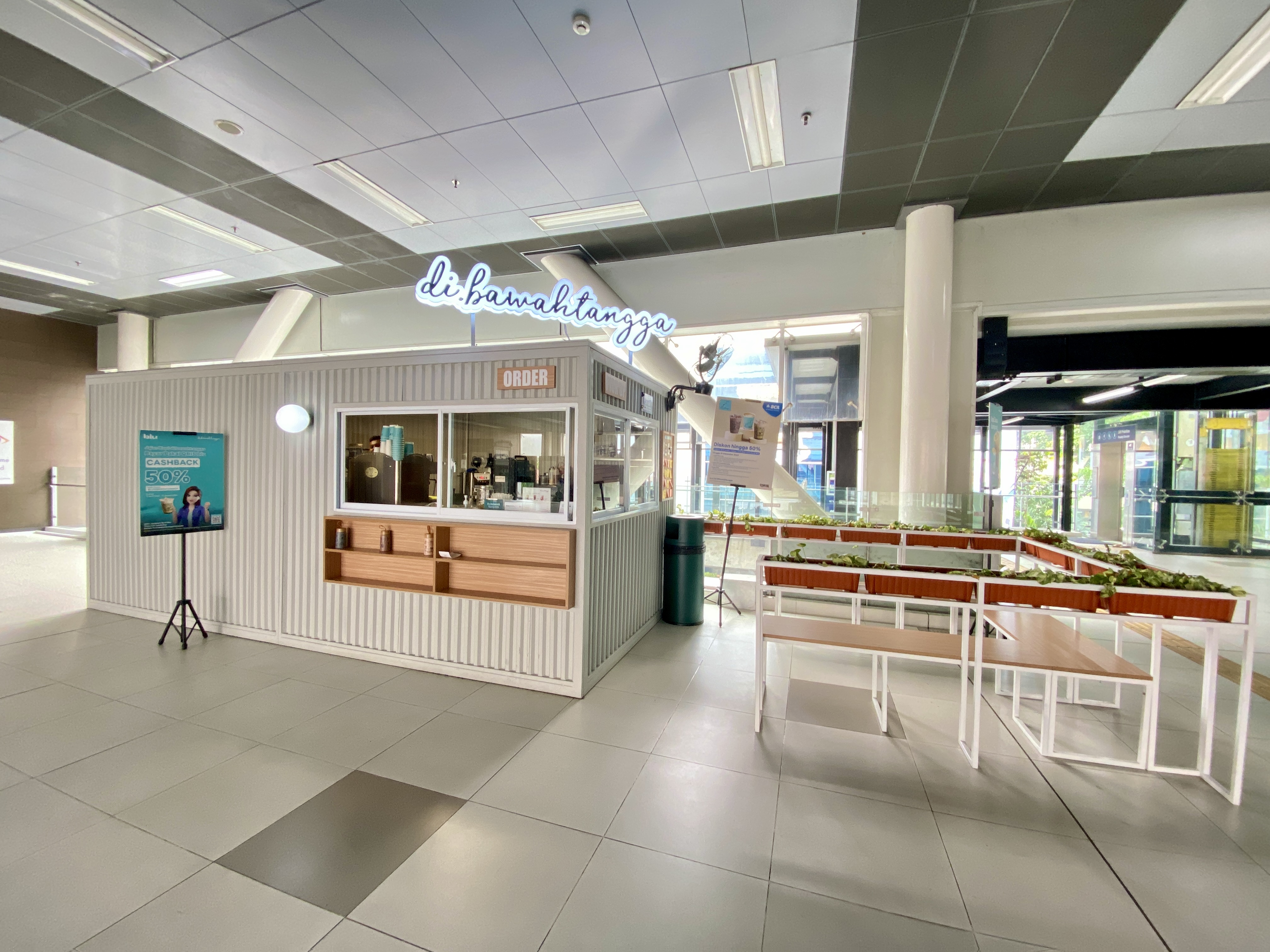 - Panel kaca penahan hujan menciptakan kesan modern ala pusat-pusat perbelanjaan.