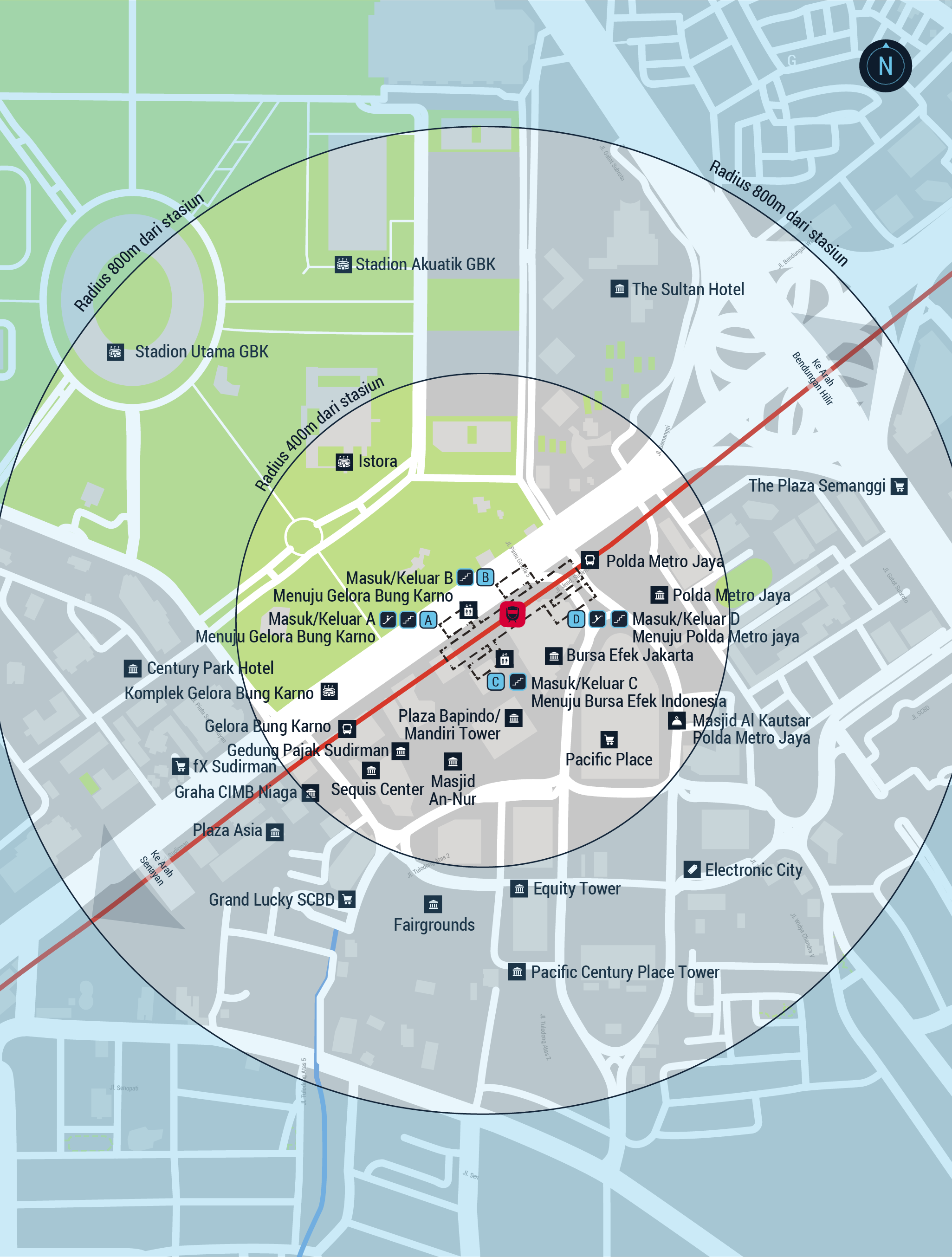 - Setiap stasiun akan memiliki tangga khusus sebagai jalur evakuasi.